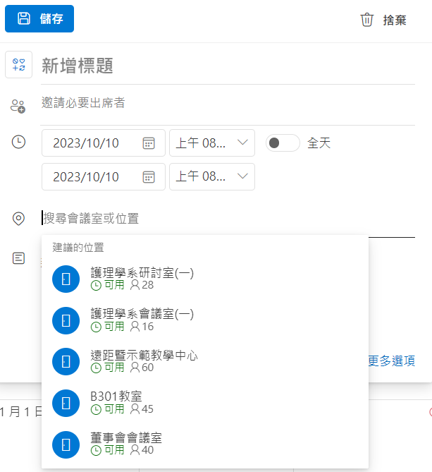 校內行事曆系統借用空間